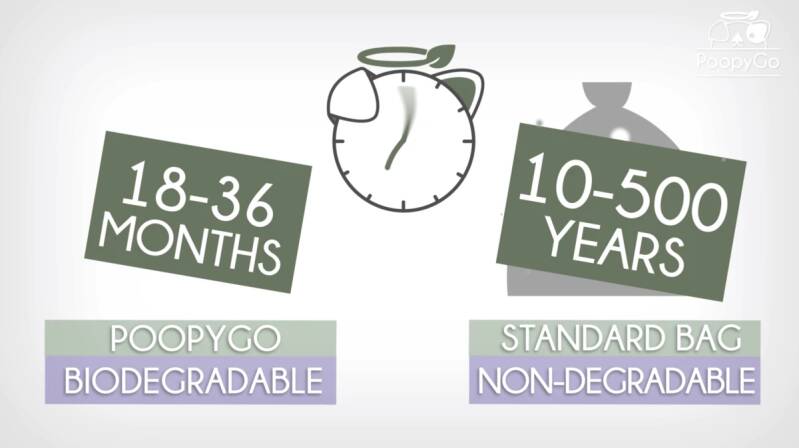Normale plastic poepzakjes kunnen wel honderden jaren nodig hebben om afgebroken te worden, afhankelijk van de omgeving waarin ze worden gedumpt. Dit kan leiden tot vervuiling van het milieu en gevaarlijke situaties voor dieren. Daarentegen zijn de PoopyGo poepzakjes gemaakt van biologisch afbreekbare materialen, waardoor ze binnen een periode van 18 tot 36 maanden afbreken. Dit betekent dat ze geen blijvende schade aanrichten aan het milieu en dat er geen risico is voor dieren die ermee in contact komen. Daarom zijn PoopyGo poepzakjes een milieuvriendelijkere keuze dan normale plastic poepzakjes.