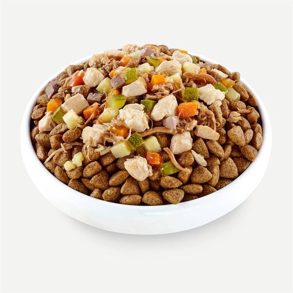 Van de eerste hap tot de laatste crunch, je hond zal dol zijn op onze Stew Toppers op hun favoriete droge hondenvoer - bijna net zoveel als ze van jou houden. Het is gemakkelijk te begrijpen waarom, wanneer je stukjes kipfilet, mals lamsvlees en lamslever met veel gehakte groenten over de brokken giet.